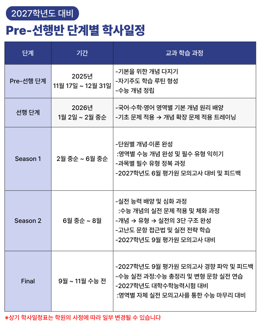 Pre-선행반수능 스터터들을 위한소수정예 기초 종합반 | ![]() |