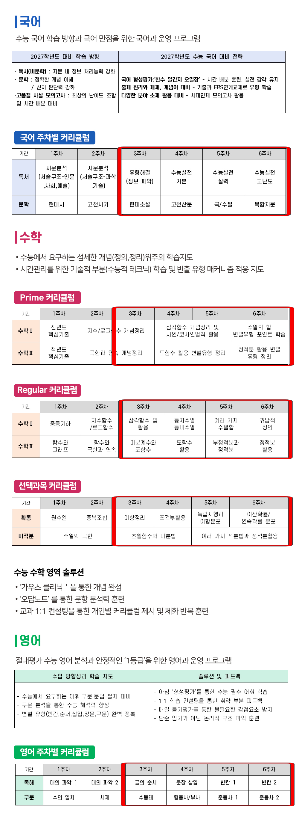 통학학원 - 대입선행반