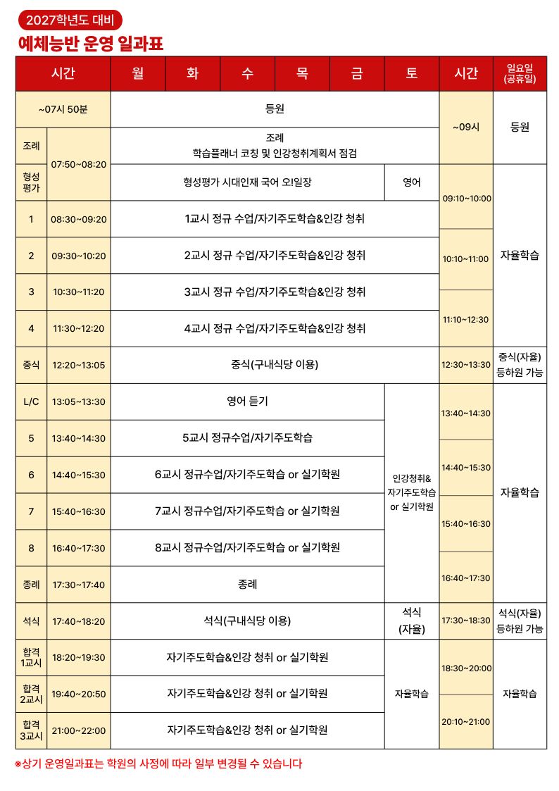 통학학원 - 예체능반